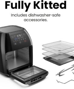 Multifunctional Digital Air Fryer+ Rotisserie, Dehydrator, Convection Oven, 17 Touch Screen Presets Fry, Roast, Dehydrate, Bake, XL 10L Family Size, Auto Shutoff, Large Easy-View Window, Black